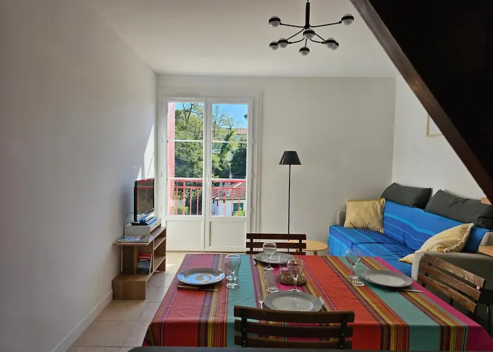 The apartment is equipped with self-catering amenities such as an electric kettle, a refrigerator, and kitchenware, providing guests with the opportunity to prepare their own meals. The nearest airport is Biarritz, 20 km from Le Fronton Apartment, and Extebazater bus station is approximately 400 metres away.